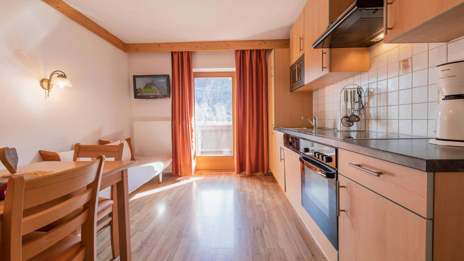 Serlesblick: wahlweise 1 - 2 Doppelzimmer je nach Personenanzahl (ab 4 Personen mit 2 Doppelzimmern!),einmal mit 1 Zusatzbett, gemütlich eingerichtete Wohnküche mit SAT-TV, Backofen, Geschirrspüler, Kühlschrank mit Gefri..