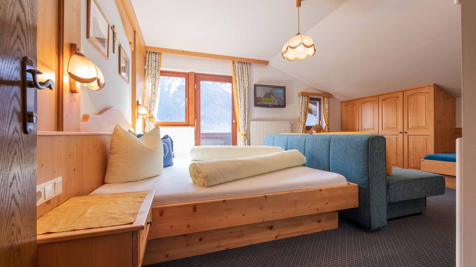 •ca. 26 m² •Balkon mit freier Aussicht auf unsere schöne Bergwelt •Bad/WC, Föhn zusätzliche Dusche und WC gleich neben dem Zimmer •Sat-TV •W-LAN (Kostenlos) •Weckeinrichtung •Garderobe, Safe •2 - 4 Personen..