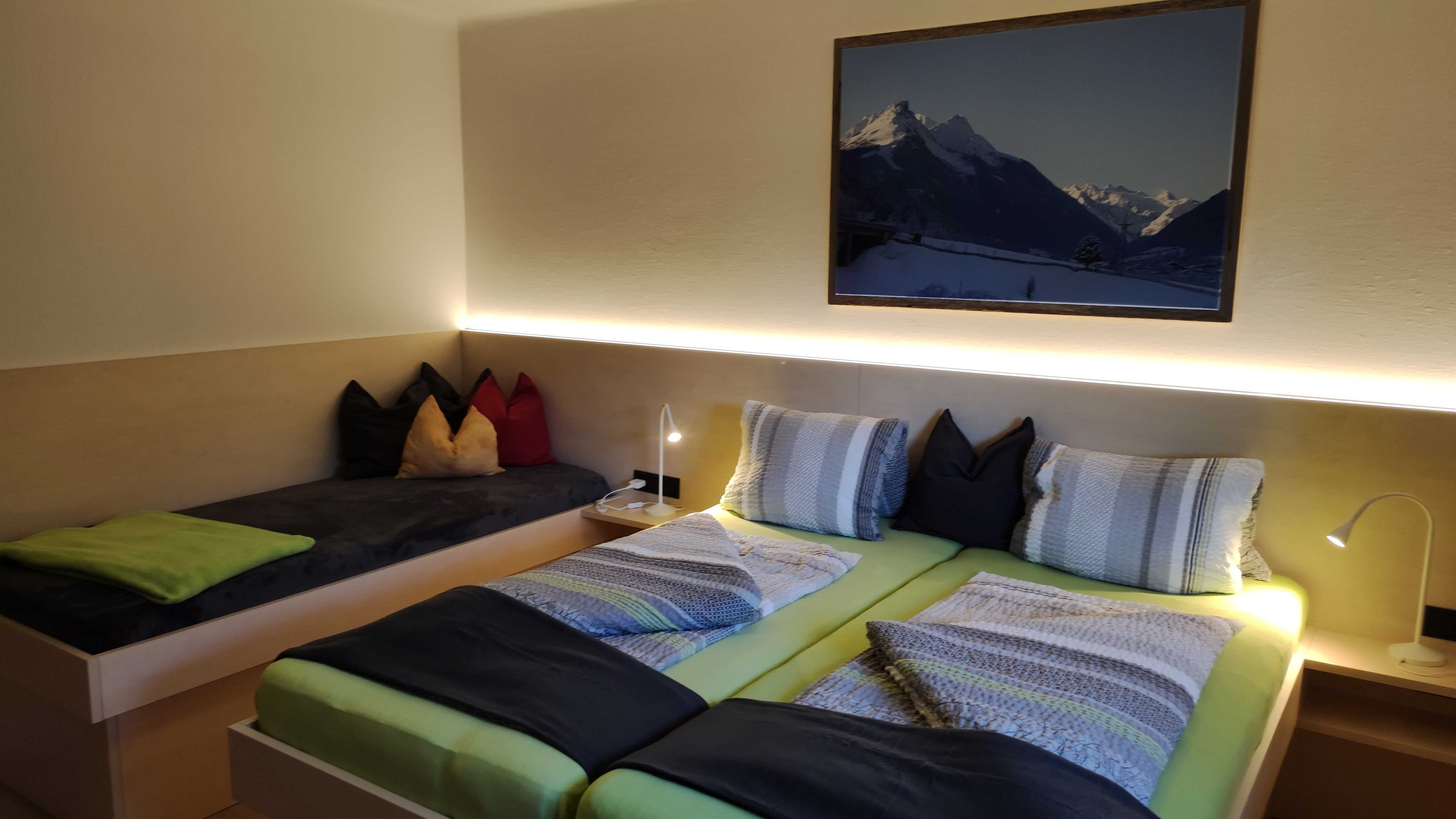 Die Wohnung DAVID bietet für 2-6 Personen (6. Person auf Anfrage) mit ihren 78 m² viel Platz zum Erholen und Entspannen. Die 2 Doppelzimmer, 1 Wohn-Schlafraum und die voll ausgestattete Küche mit Essecke sind hell, modern und im gemütlichen Tiroler Stil eingerichtet. (ein Parkplatz)