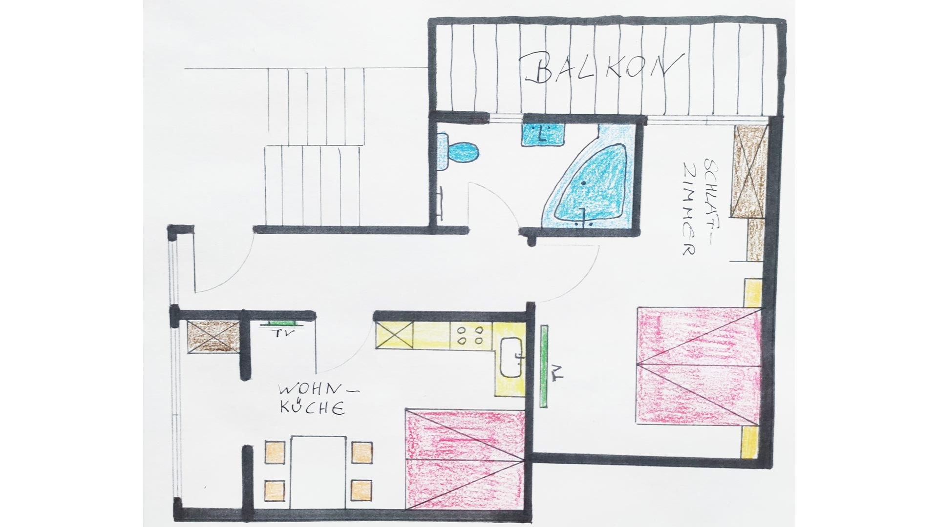 Die Wohnung NICO ist 48m² groß und bietet für 2 – 4 Personen Platz. Die Wohnung ist im 1. Stock, ist ebenfalls voll ausgestattet, hat eine Eckbadewanne und einen großen Balkon der Richtung Süden ausgerichtet ist. (ein Parkplatz)