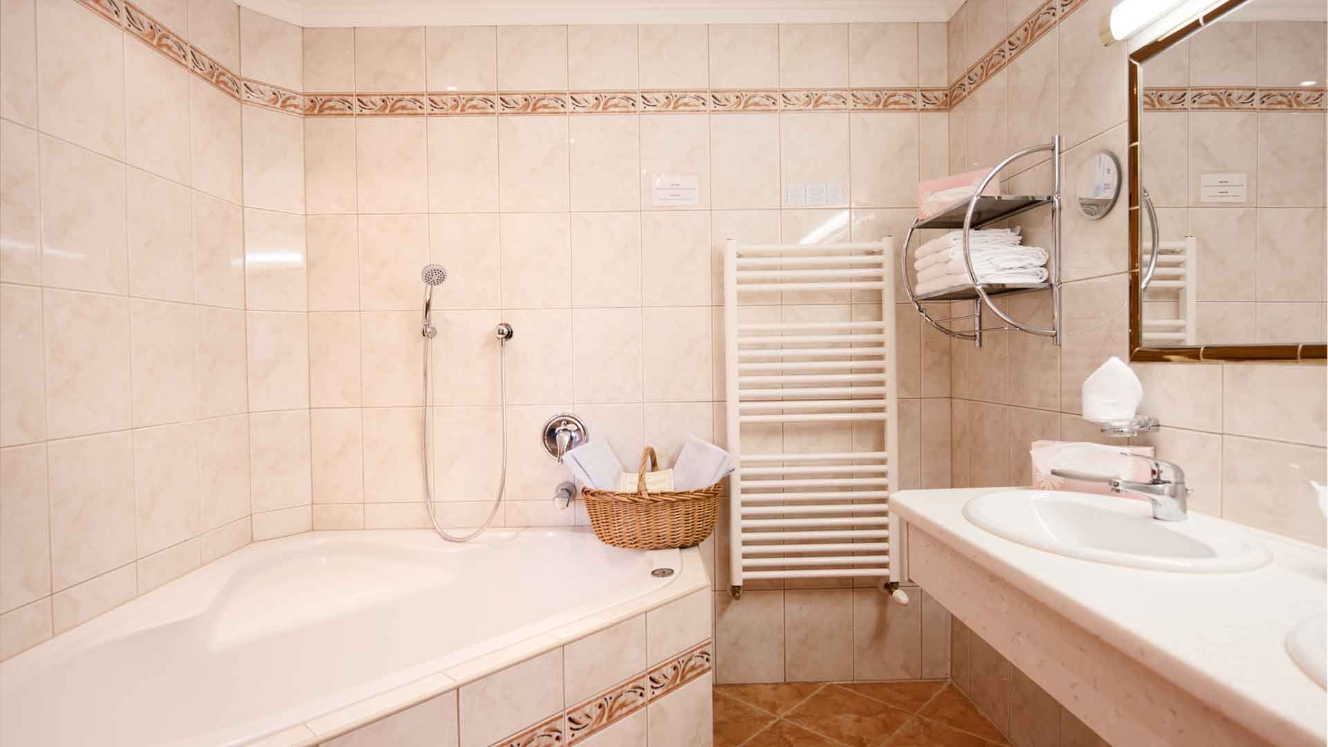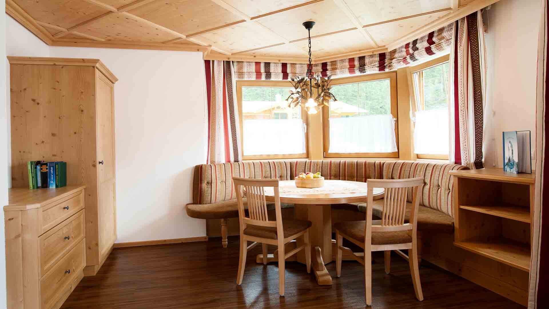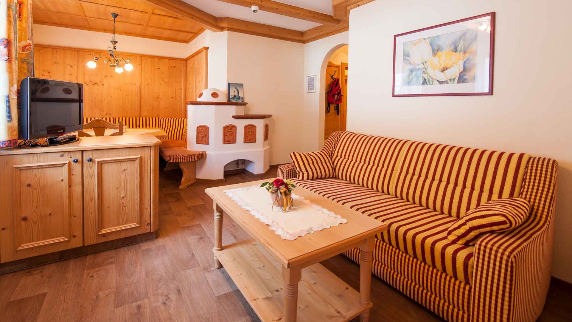 Geräumige Suite (60 qm) mit Wohnstube, abgeteiltem Schlafraum, Kochnische, Dusche und Badewanne, Toilette getrennt, Internetanschluss, Radio, SAT-TV, Telefon, Safe, Föhn und Balkon mit herrlichem Blick auf den Volderaue..
