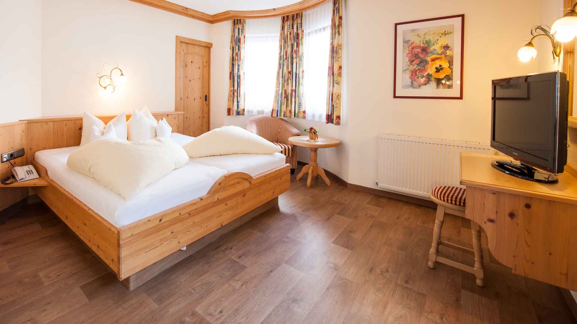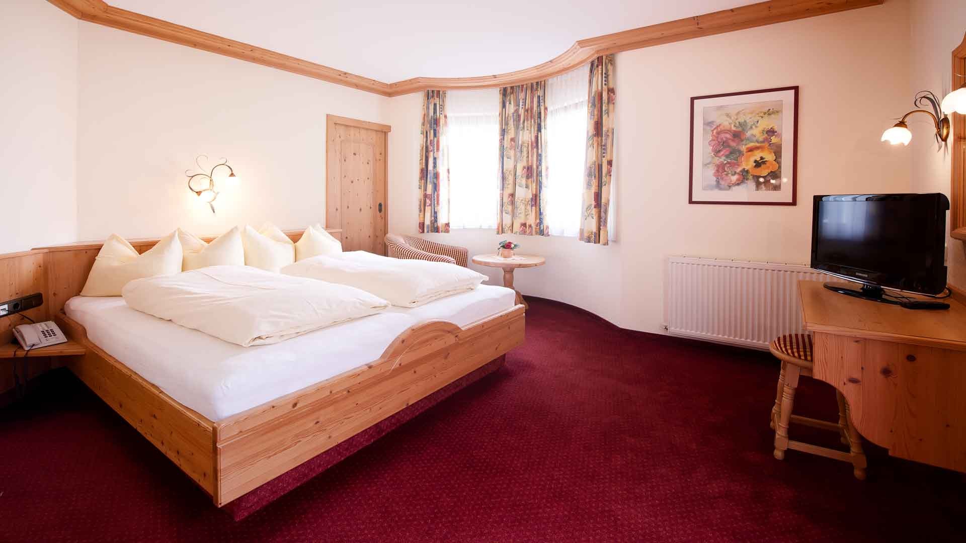 Gemütliches Doppelzimmer mit Sitzecke, Dusche und Toilette getrennt, Internetanschluss, Radio, SAT-TV, Telefon, Safe, Föhn und Balkon mit bezauberndem Blick auf die Stubaier Alpen. Alle unsere Zimmer und Suiten im 4-..