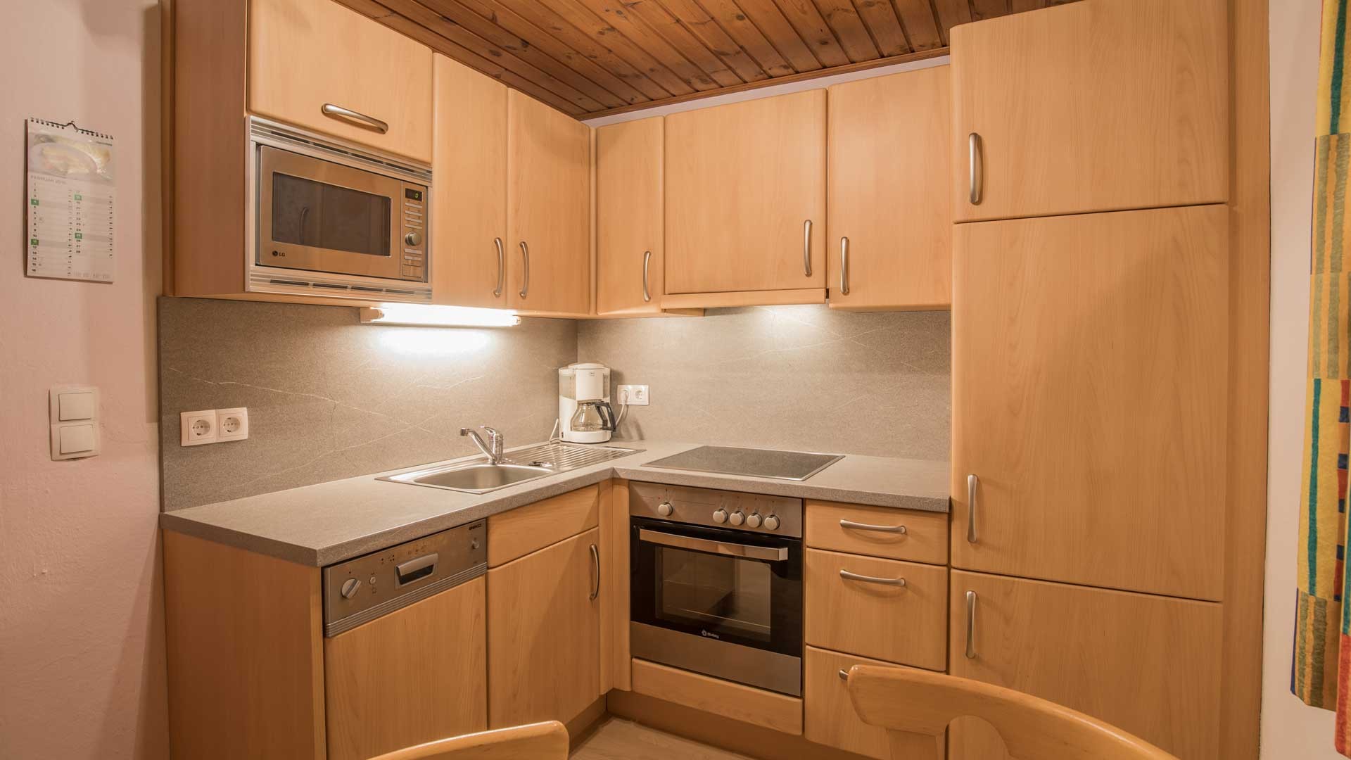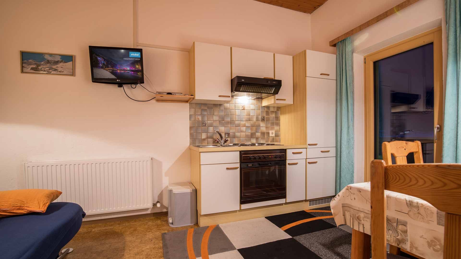 FERIENWOHNUNG ZUCKERHÜTL: 40 qm groß, ein abgeschlossenes Schlafzimmer mit Sofa (Dreibettzimmer), Dusche und WC separat, gemütliche Wohnküche mit Sofa (Schlaffunktion für 2 Personen), Backofen, ..