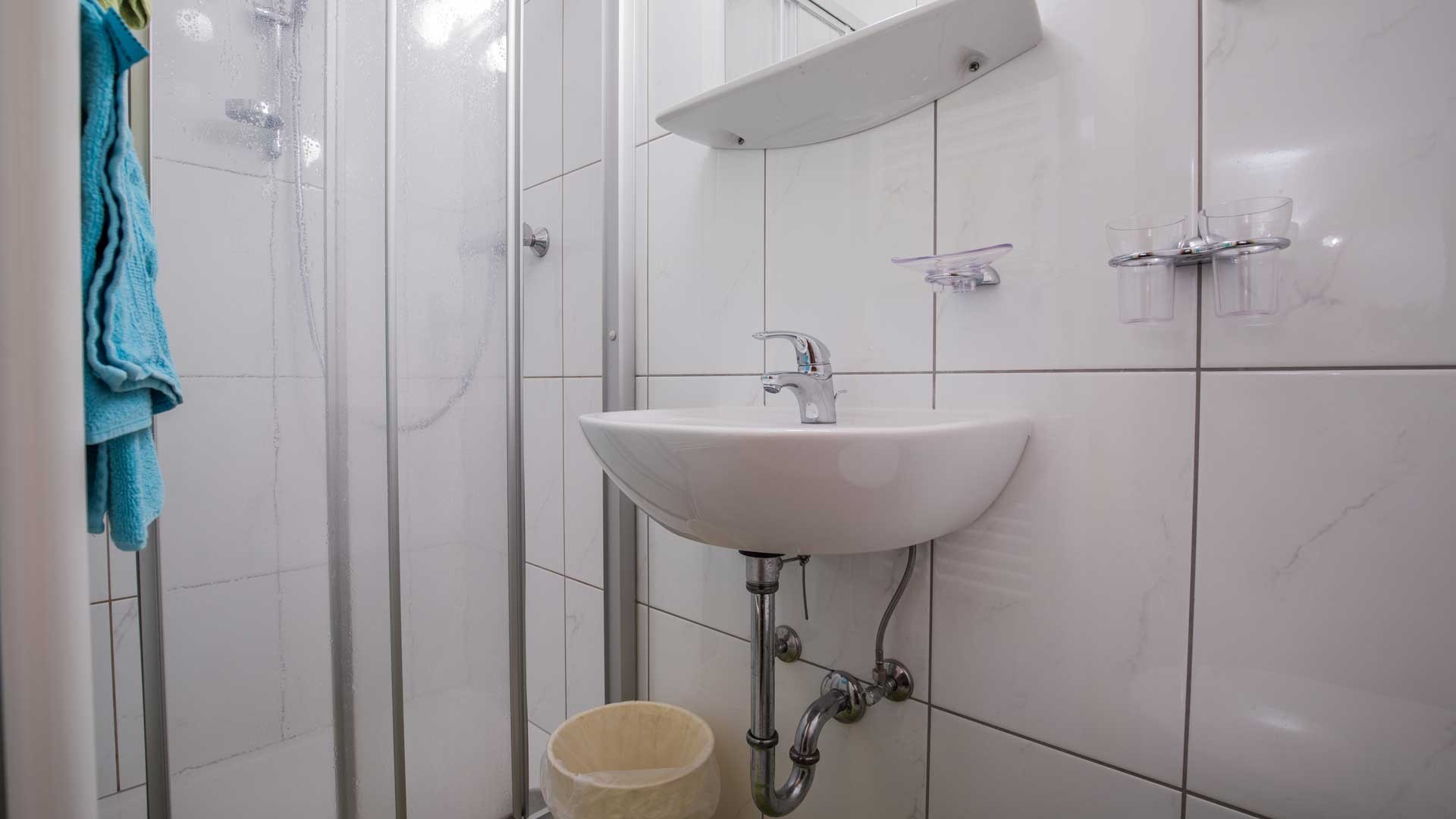 Ferienwohnung Sonnenberg: 65 qm, 2-6 Personen mit 2 Schlafzimmern, jedes Zimmer mit Dusche und WC, ein Doppel- und ein Mehrbettzimmer, große Flachbild-SAT-TV in den Schlafzimmern, Küche mit Esstisc..