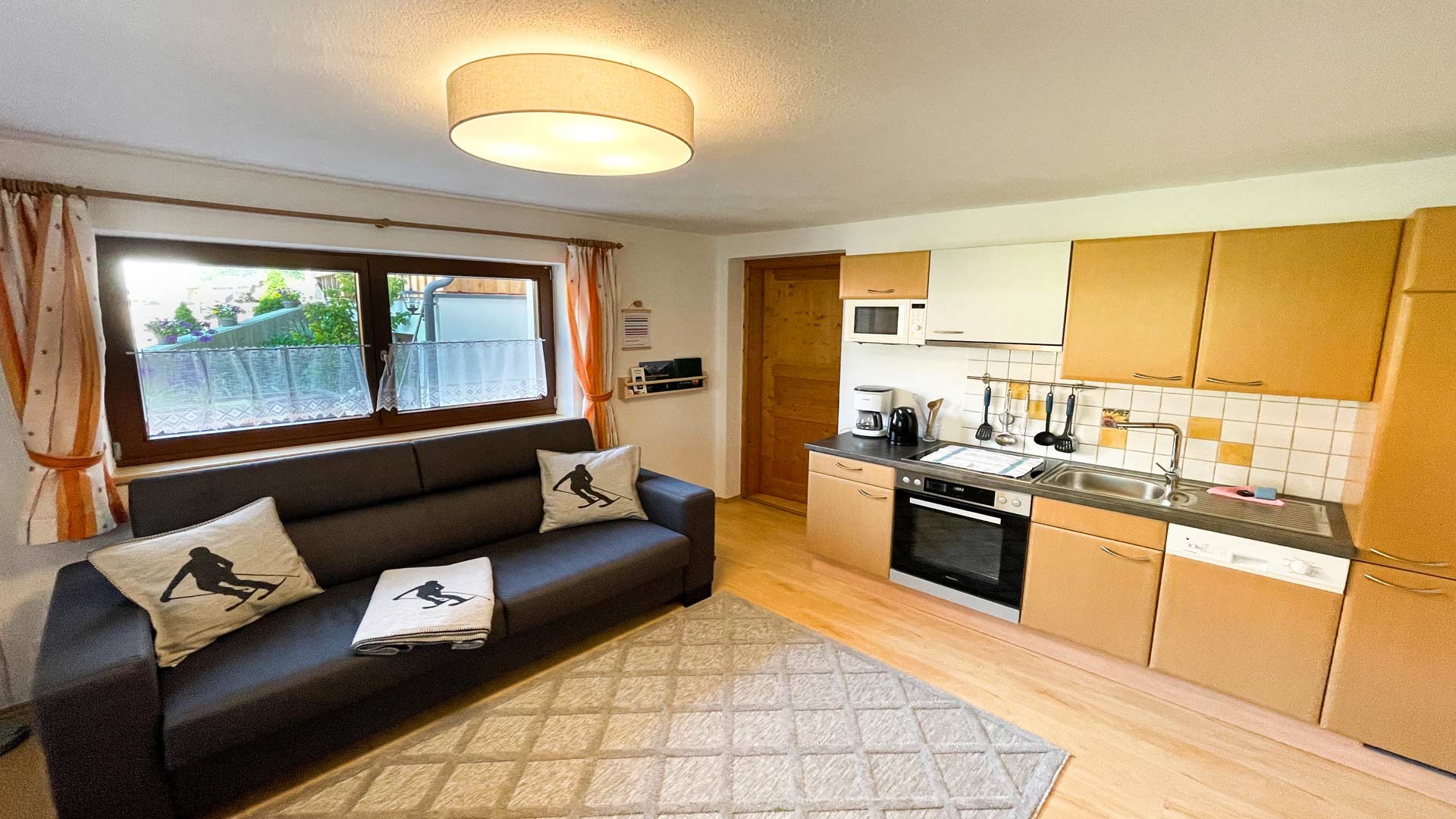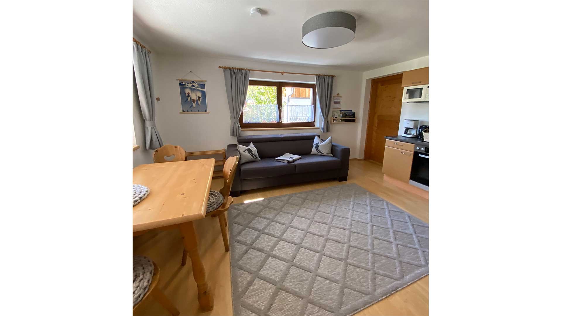 Appartement mit 1 Doppelzimmer und 1 gemütlich eingerichtetem Wohnschlafraum mit Küchenblock. Mikrowelle, Geschirrspüler, Kühlschrank mit Gefrierfach, Kaffeemaschine, elektr. Wasserkocher, Toaster, genügend Kochutensilien und Geschirr. SAT-TV, WIFI, 1 Dusche/WC, Terrasse mit Stubaier Gletscherblick. Für 1 - 2 Gäste.