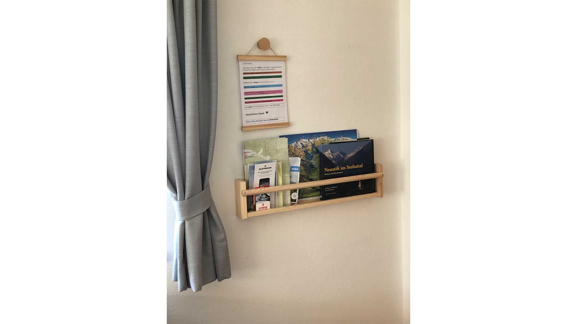 Appartement mit 1 Doppelzimmer und 1 gemütlich eingerichtetem Wohnschlafraum mit Küchenblock. Backofen, Mikrowelle, Geschirrspüler, Kühlschrank mit Gefrierfach, Kaffeemaschine, elektr. Wasserkocher, Toaster, genügend Kochutensilien und Geschirr. SAT-TV, WIFI, 1 Dusche/WC, Terrasse mit Stubaier Gletscherblick. Für 1 - 2 Gäste.