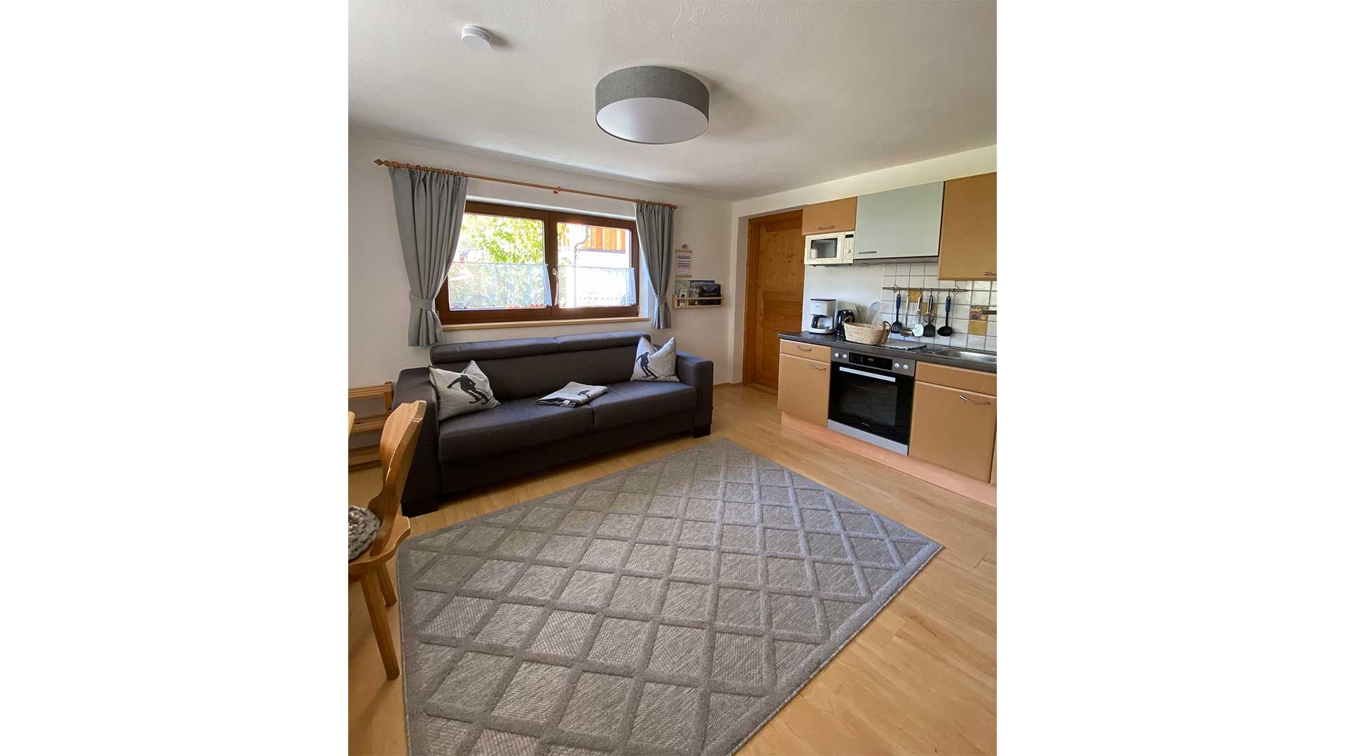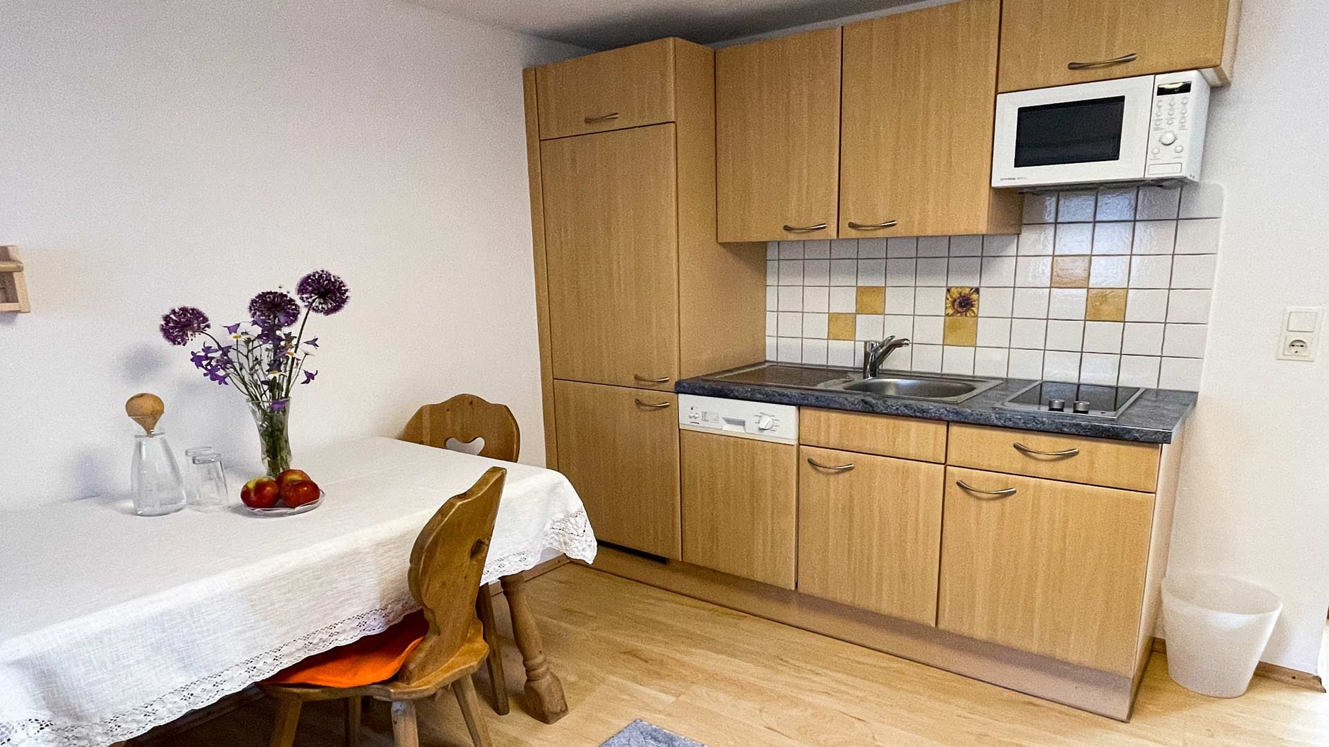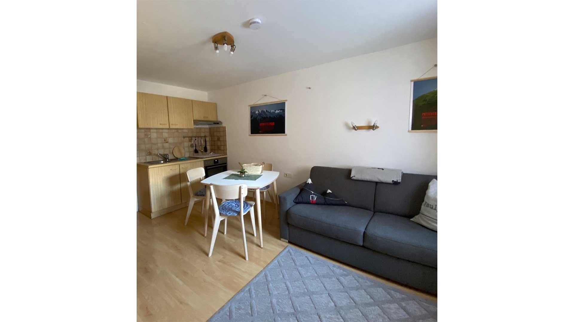 Appartement mit 1 Doppelzimmer und 1 gemütlich eingerichtetem Wohnraum mit Küchenblock. Backofen, Kühlschrank mit Gefrierfach, Kaffeemaschine, elektr. Wasserkocher, Toaster, genügend Kochutensil..
