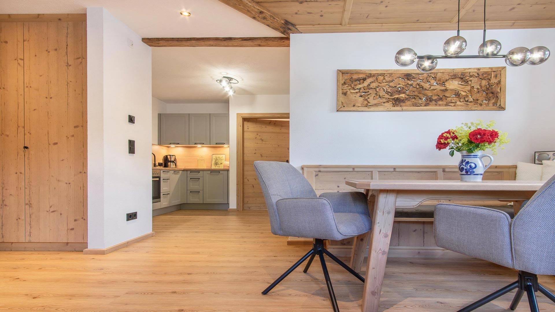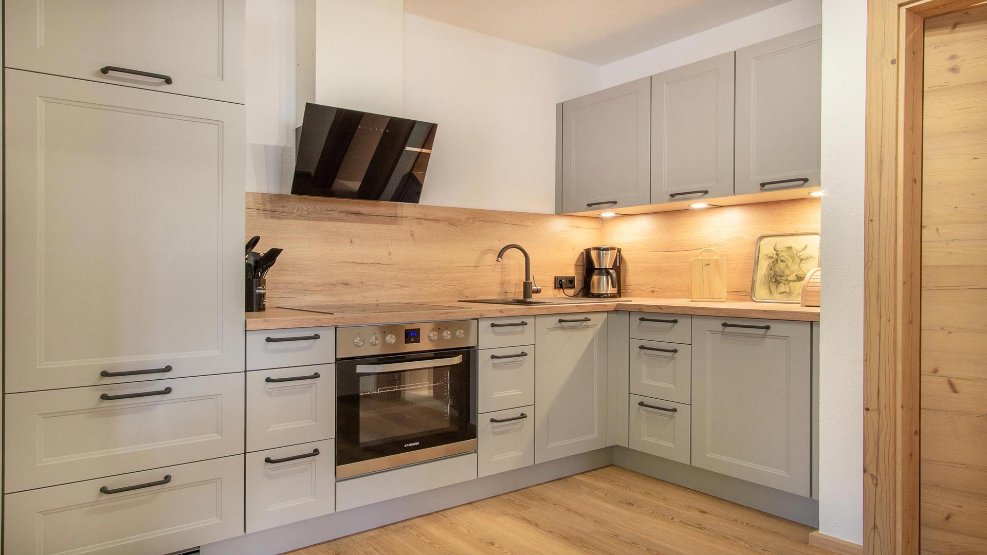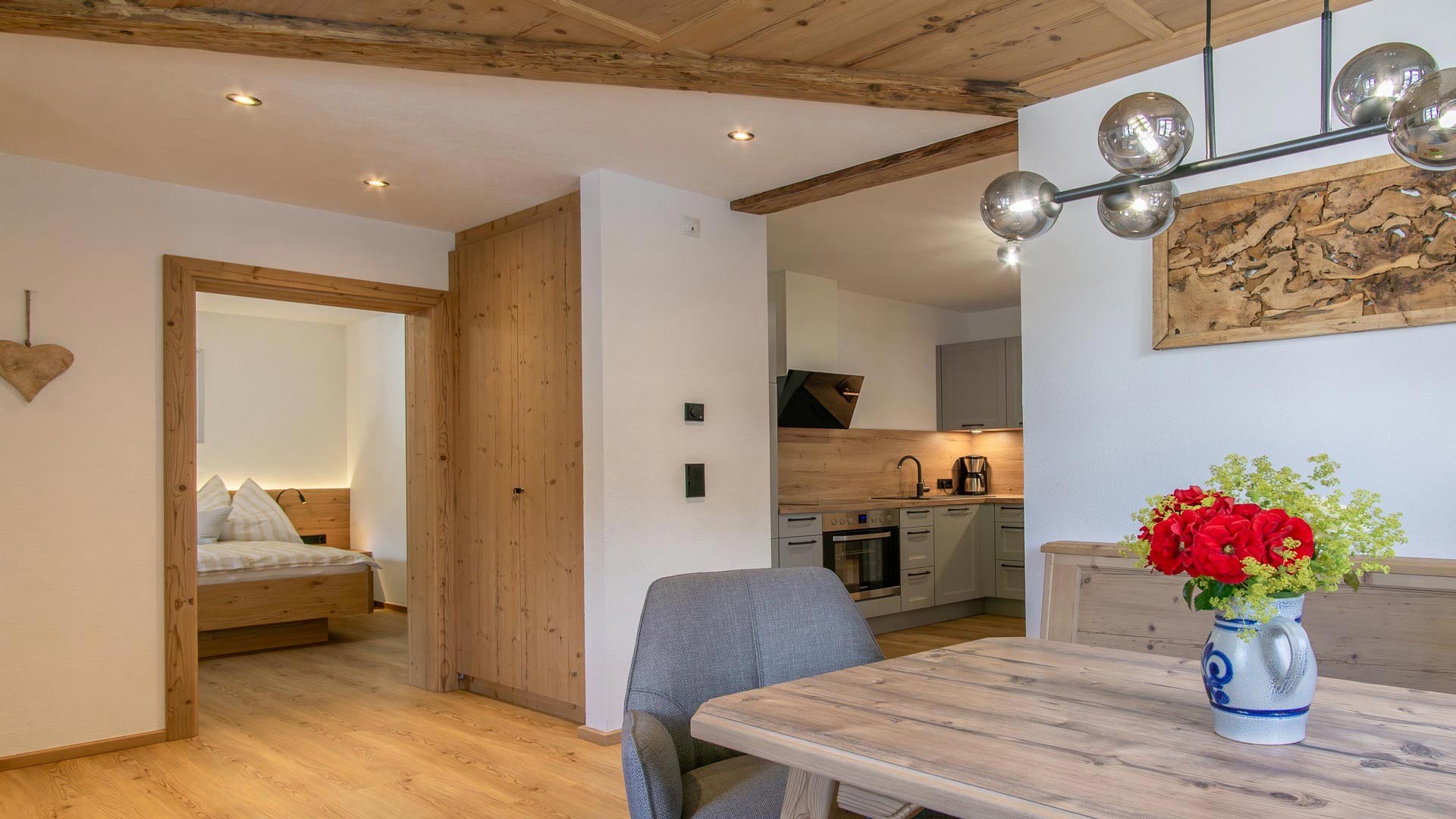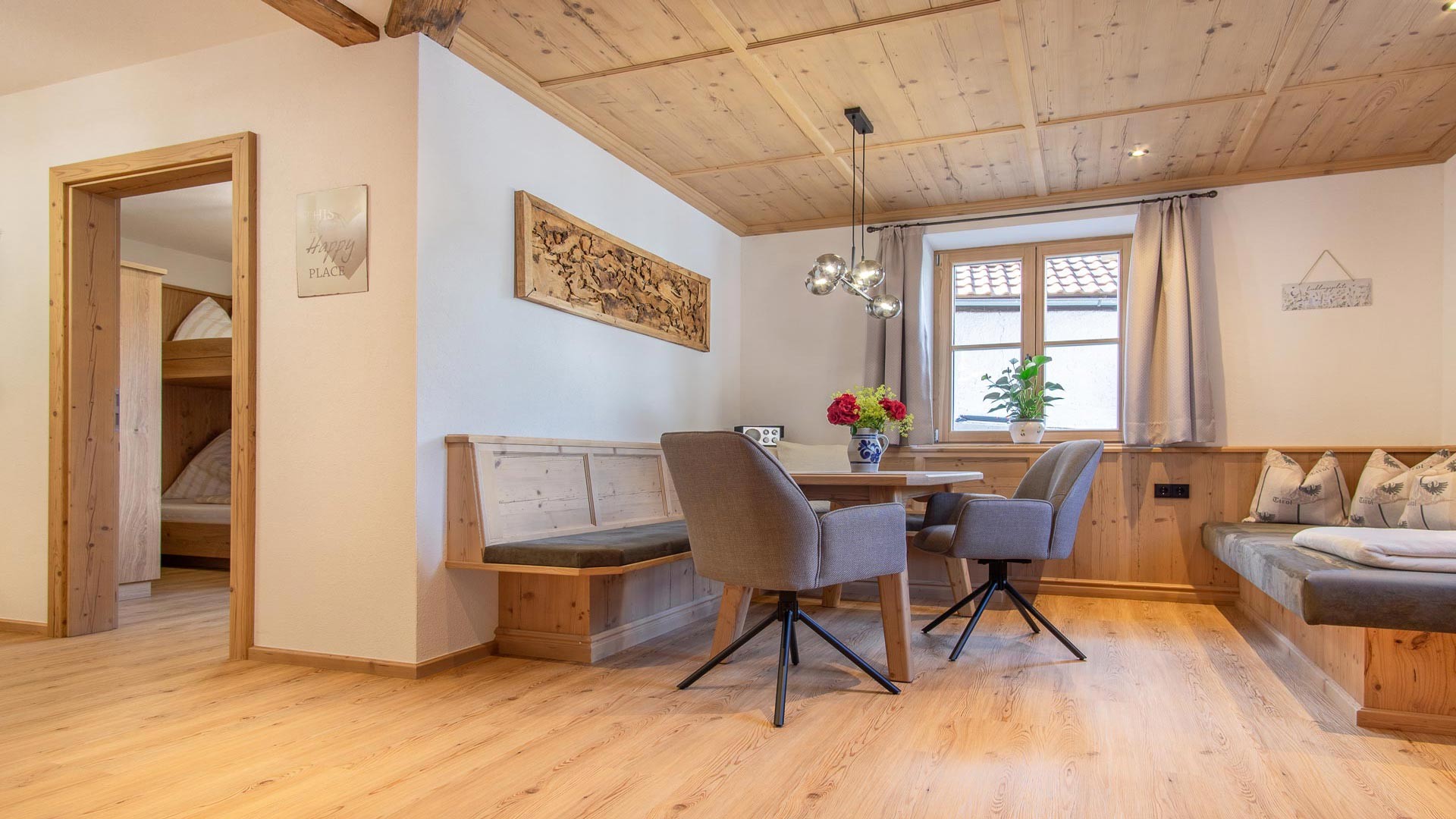 Unsere Ferienwohnung Zweite Heimat bietet Platz für bis zu 5 Personen. Das Herzstück der Wohnung, die mit viel Sorgfalt eingerichtete Wohnküche, ladet nach einem erlebnisreichen Urlaubstag zum gemeinsamen Kochen und Essen ein.